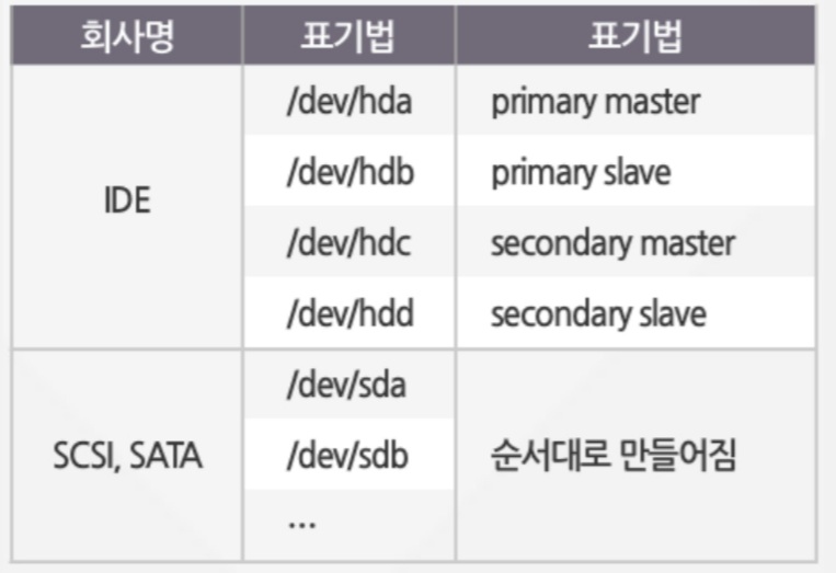 물리디스크는 제조사의 타입별 파티션 표기법이 다름